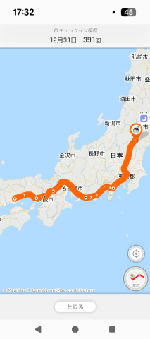 ちなみに↑は年末岡山→東京→福島と帰省の足跡?